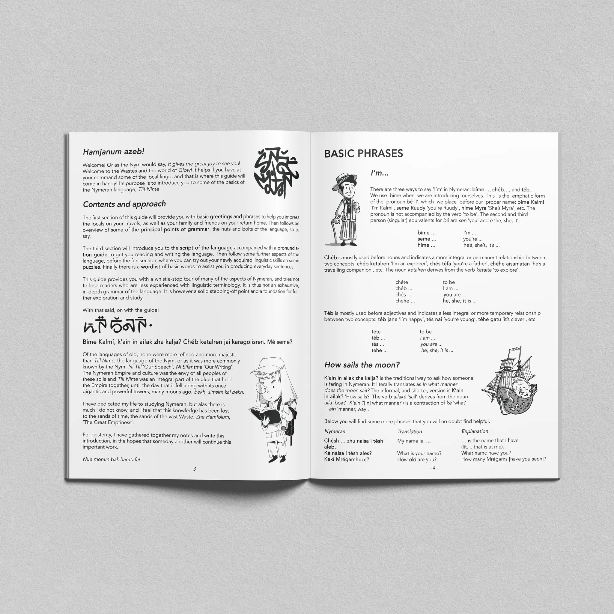A language guide for the fictional language Nymeran that appears in the comic series Glow.
